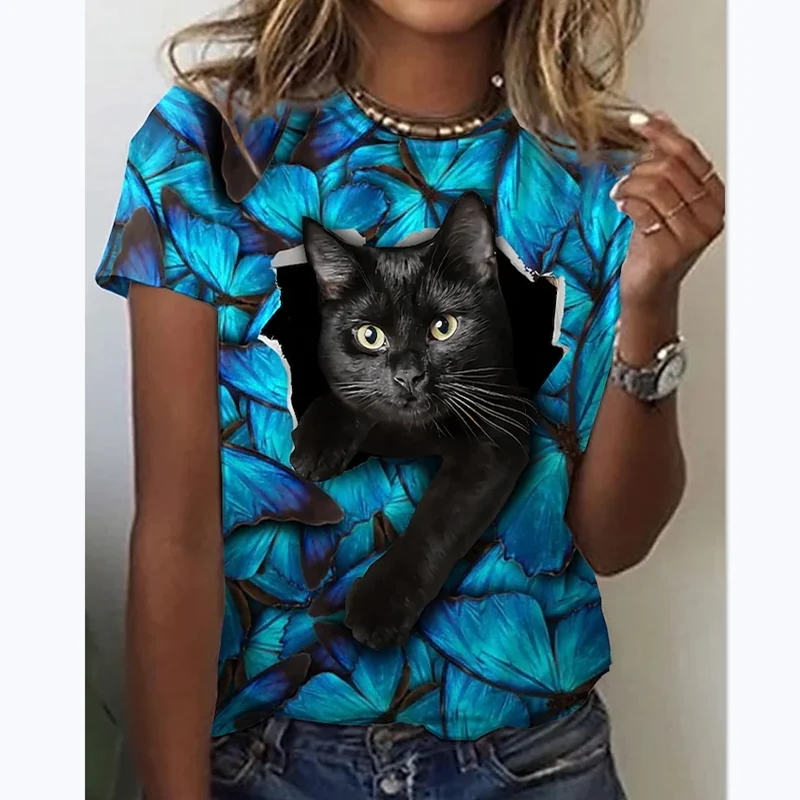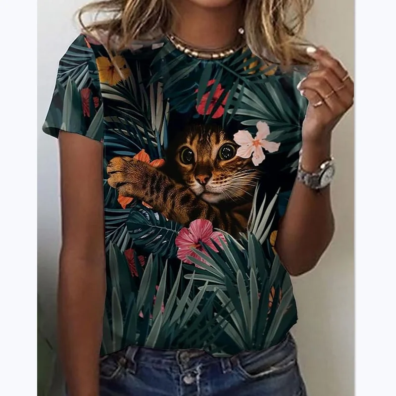 Cat 3D printing short-sleeved T-shirt women's comfortable